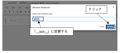 「Untitled.ipynb」というファイルが追加されたら、今度はファイル名を「Untitled.ipynb」から「__init__.ipynb」に変更します。