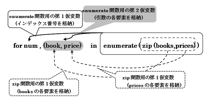 図 7.1.3:zip関数とenumerate関数を使ったfor文