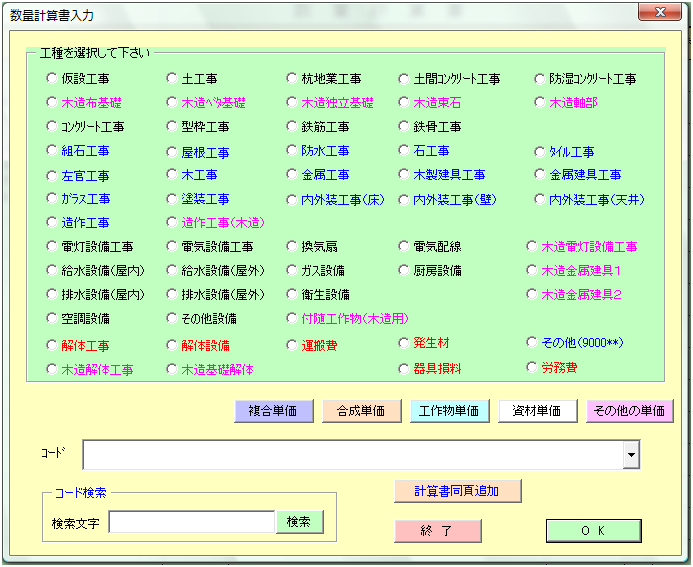 作業選択フォームの |