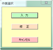 「入力」フォームと「修正」フォームは、色とタイトルを変えていますが、 つまり、作成したユーザーフォームは、3つにみえますが、 |