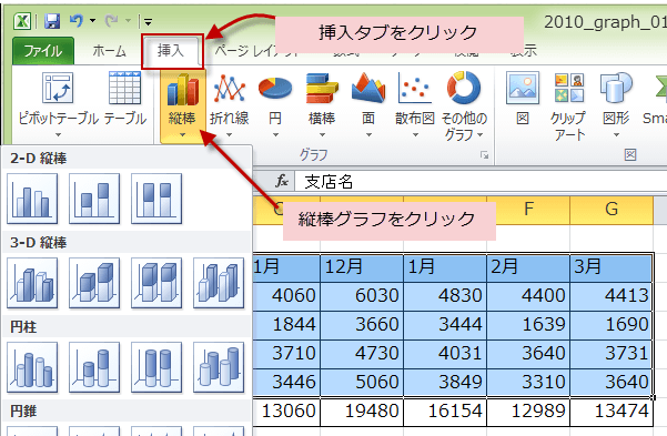 Excel2010でグラフを作成するには