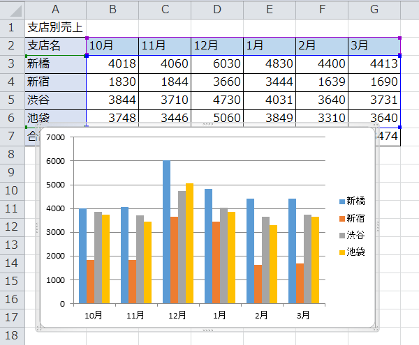 グラフを作成できました。グラフは選択された状態です。