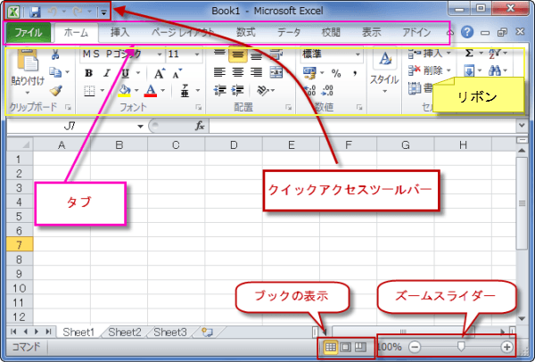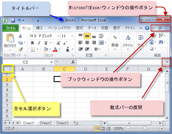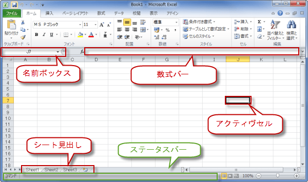エクセル2010画面構成