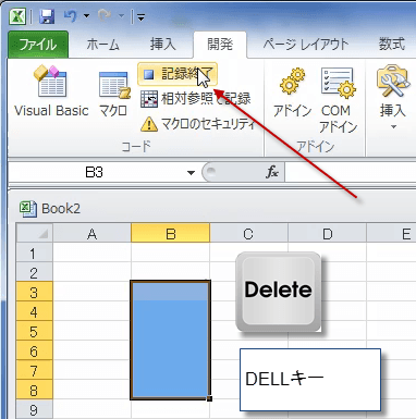 消去するマクロを個人用マクロブックに記録する
