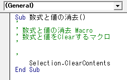 Selection.ClearContents 数式と値のクリア、