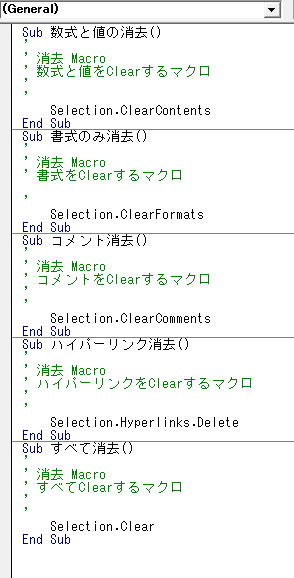 Selection.ClearComments コメントのクリア、