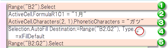 ステートメントとは、「セルB1を選択する」といった内容を表す、1つの完結した命令文です。