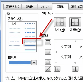 [スタイル] の一覧から、太い線や二重線、点線が指定できます。