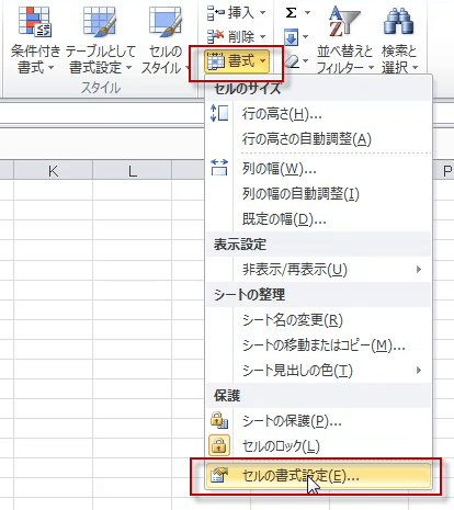 [ホーム] タブにある [書式] をクリックします。
