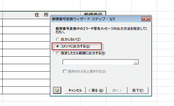 郵便番号変換ウィザードを使って郵便番号から住所入力