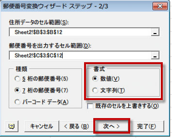 郵便番号変換ウィザードにもどり、完了をクリックします。