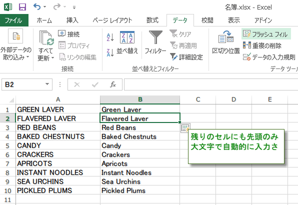 すると、残りのセルに先頭大文字で単語が自動的に入力されました。