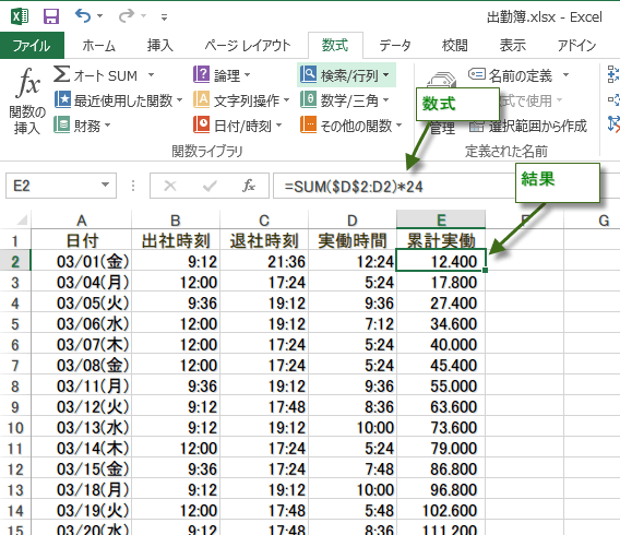 FORMULATEXT(フォームュラテキスト)関数を使うと、ワークシートに数式と結果を表示することができます。
