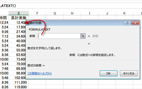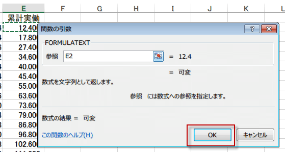 数式の入っているセルをクリックで選択し、[OK]をクリックします。