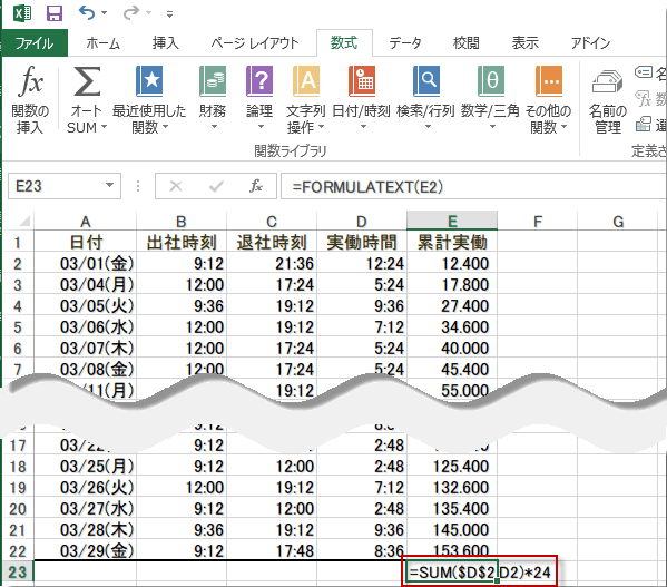 FORMULATEXT(フォームュラテキスト)関数で数式を表示