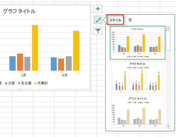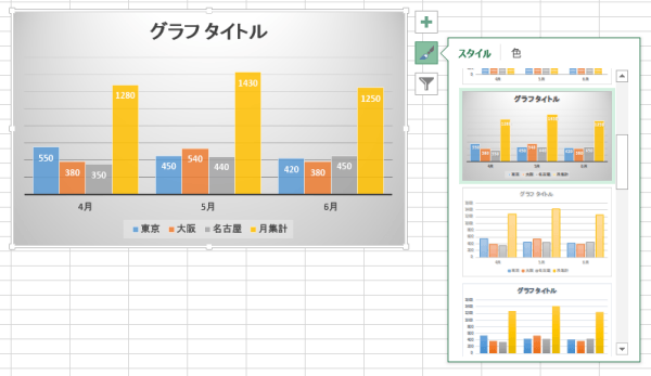 「グラフ スタイル」ボタンをクリックします。任意のスタイルを選択します。