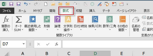 「関数ライブラリ」グループに関数の分類別のボタンが表示されます。