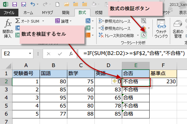 数式の見直しや検証 Excel2013 関数技17回