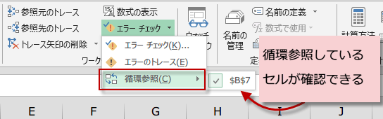 たとえば、下図の数式には、その数式が含まれているセルである "B7" が含まれています。
