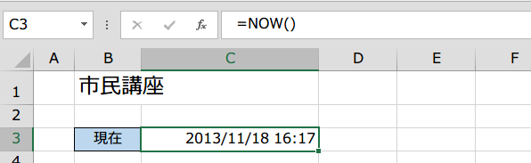 C3セルにNOW関数で現在の日時を表示していますから、これを利用します。
