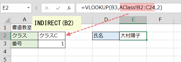 参照する表が複数の別シートの場合は、どうしたらいいのでしょうか?データのあるシートがクラス別になっている場合にVLOOKUP関数でクラスを切り替えながら表引きしたいケースなどです。