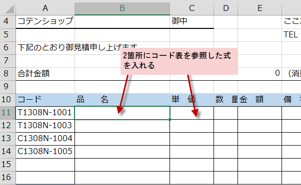 もう、これで、90%完成です。あとは、単価のセルに式をコピーするだけです。注意することは、参照セルの列だけ絶対参照にしておくことです。