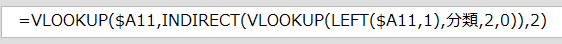 INDIRECT(VLOOKUP(MID(A11,1,1),分類,2,0))