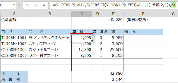 これで、コード表が何種類あっても、基本的には、VLOOKUP関数の式に収まります。
