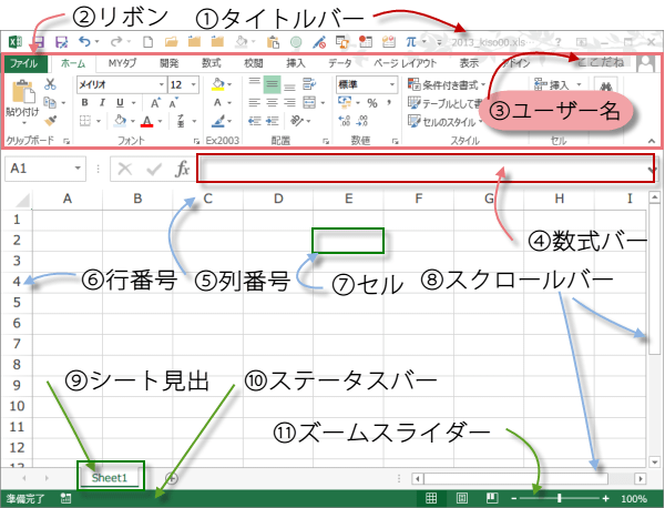 Excel 2013 の画面構成〜Excel 2013使い方基本操作