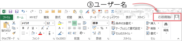 ここには、Officeにサインインしているユーザー名が表示されます。
