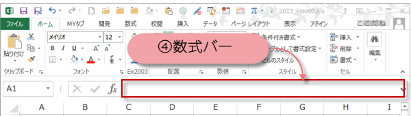 Excel 2013の画面の名称と役割