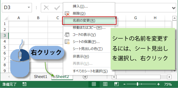 シートを追加すると、次はSheet2、Sheet3と続きます。シートの名前はわかりやすいように変更することができます。