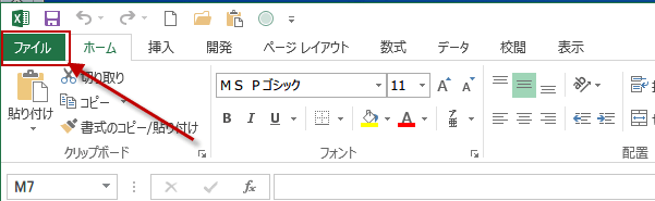 「ファイル」タブをクリックし、バックステージビューを表示します。