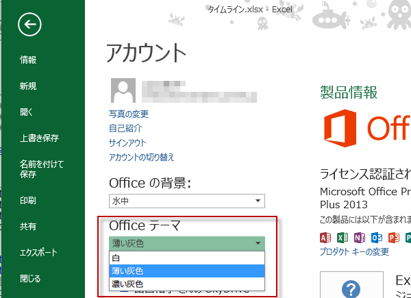 Excel 2013 使い方基本操作〜Officeテーマを変更