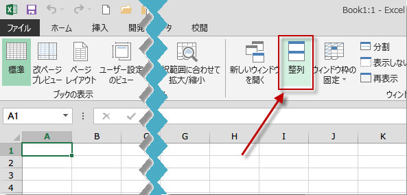 表示タブの「ウィンドウ」グループにある「整列」をクリックします。