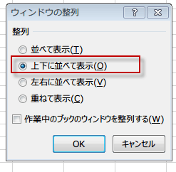 ウィンドウの整列ダイアログが開くので、整列の種類を選んでチェックを入れます。