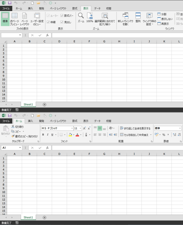 Excel2013のウィンドウが上下に整列しました。