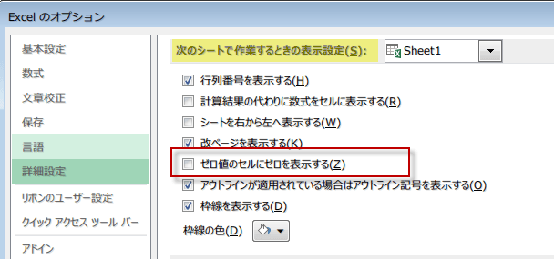 xcel 2013でゼロ値の表示を設定するには