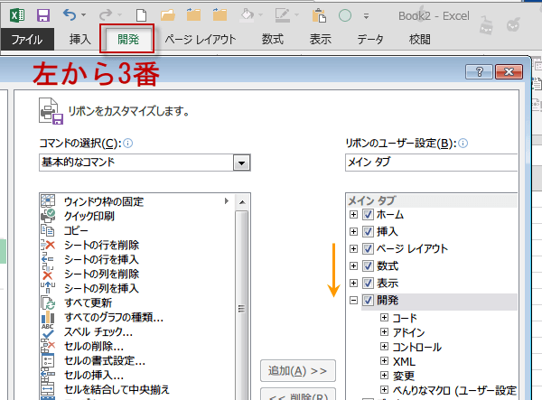 Excel 2013 リボンのユーザー設定