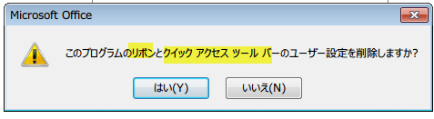 うっかり、はいをクリックすると、リボンの設定ばかりでなく、