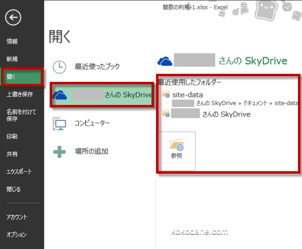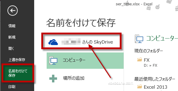 Excel 2013バックステージビューSkyDrive