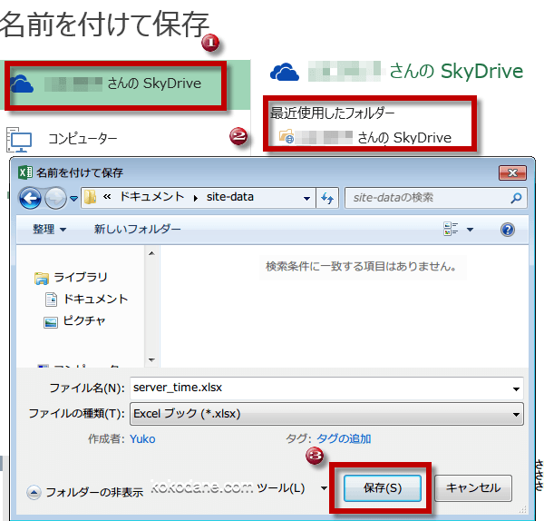 SkyDrive内の「ドキュメント」に適当なフォルダを作成して保存します。