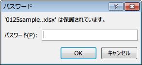パスワードで保護されたブックを開こうとすると、パスワードの入力を求められますので、パスワードを入力します。