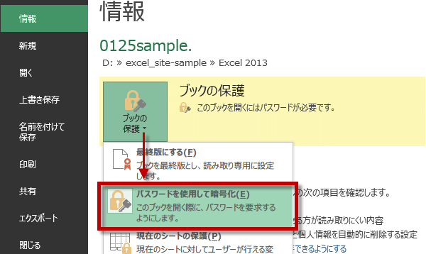 Excel 2013ブックの保護-パスワードを使用して暗号化