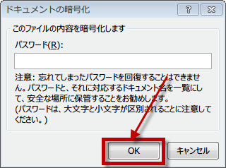先に入力したパスワードをもう一度入力してOKをクリックします。