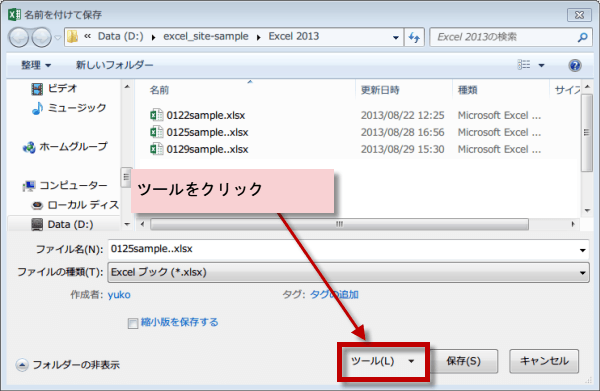 Excel 2013 読み取り専用として開くかメッセージを表示する方法