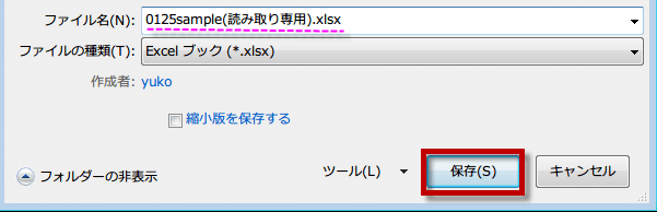 「名前を付けて保存」に戻るので、保存先を選び保存します。例では、名前の後ろに(読み取り専用)とつけわかりやすくしています。