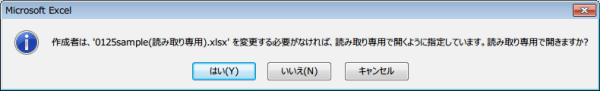 Excel 2013 読み取り専用として開くかメッセージを表示