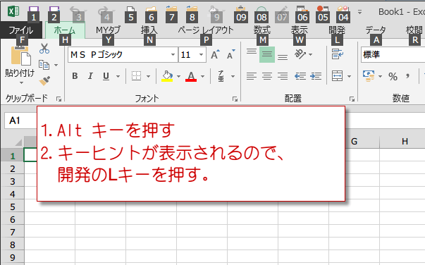 1.VBEの起動 キーヒントを利用する
