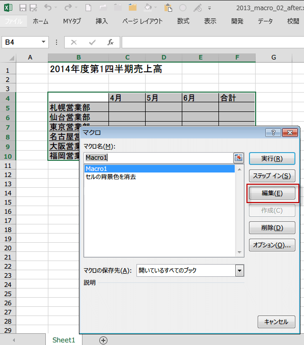 (サンプルファイルは、こちらから 2013マクロ講座2回サンプルデータを利用しています。)